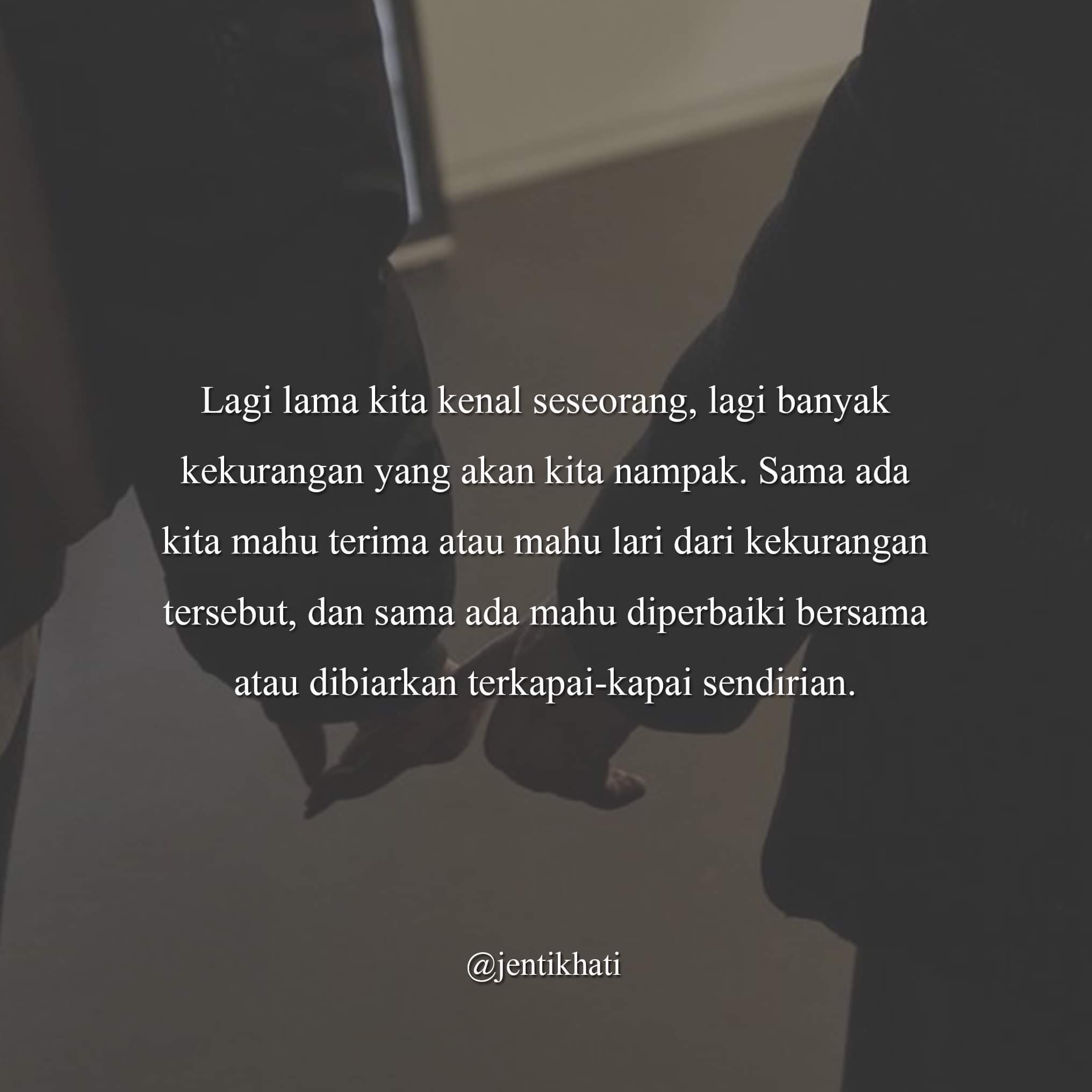 Ungkapan ini sesuai. Kehidupan selepas berkahwin tak sama dengan kehidupan masa kau bercinta. 1Menggali Informasi Carilah keterangan mengenai calon pasangan dari orang terdekatnya baik kerabat maupun sahabat.